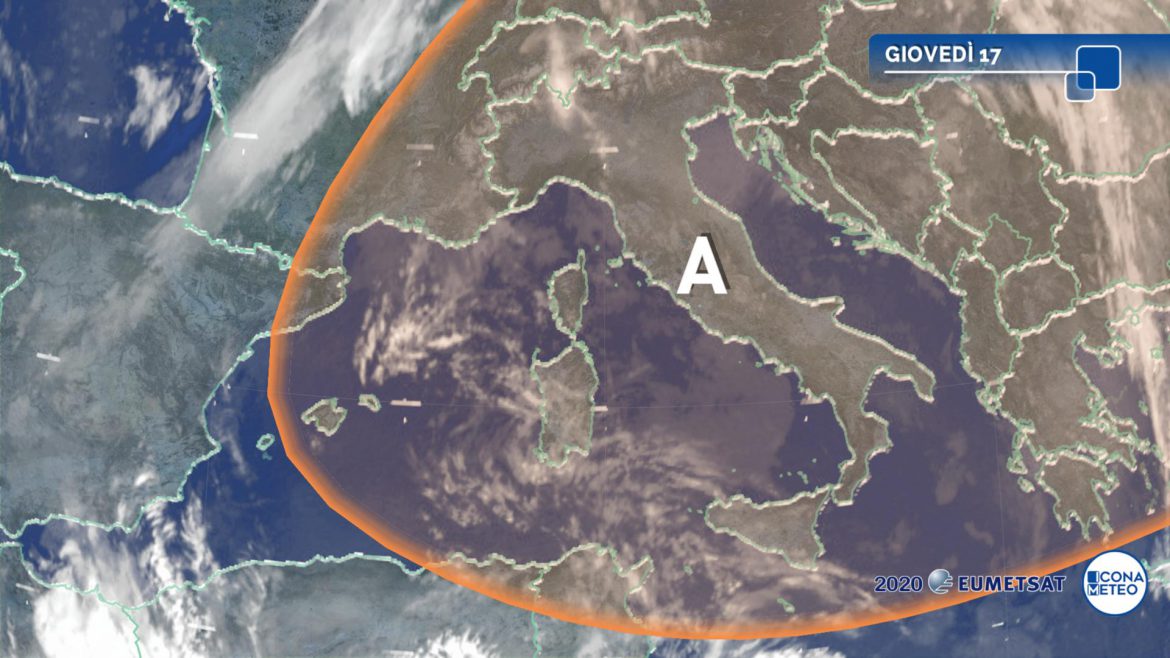 In Pianura Padana, in Romagna, nel nord delle Marche e della Toscana cieli in prevalenza grigi a causa di foschie dense, nebbie o strati bassi dovuti al loro parziale sollevamento. Cielo molto nuvoloso in Liguria, con locali pioviggini, specie dalla sera. Modesti annuvolamenti nel resto della Toscana e lungo le coste dell’alto Adriatico. Nuvolosità variabile sulle Isole maggiori, su Calabria e Puglia meridionale, con qualche goccia di pioggia nel sud-est della Sardegna. Nei restanti settori cielo sereno o poco nuvoloso.